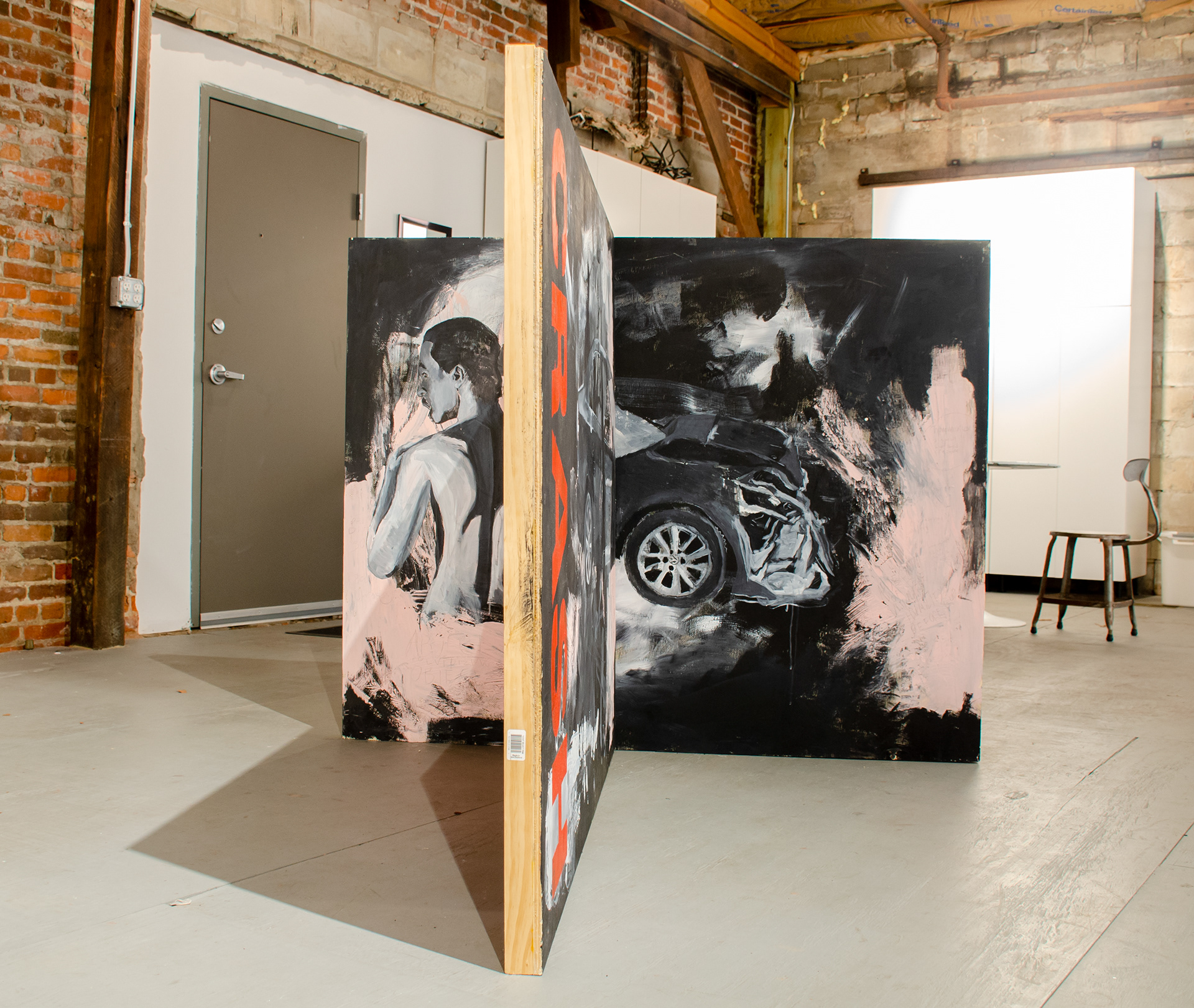 CRASH: 60x60x48” House Paint, Acrylic on Wooden Panels